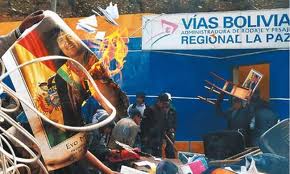 Protestado komenciĝis en la urboj La Paz kaj Cochabamba , okazis manifestacioj, bataloj, gravaj detruaĵoj, homoj estis vunditaj kaj arestitaj. Aliaj urboj prezentis amasajn manifestacioj je preskaŭ 10 000 personoj. Tie oni povis aŭskulti fortajn kriojn petante abdikecon de la prezidento Evo Morales .